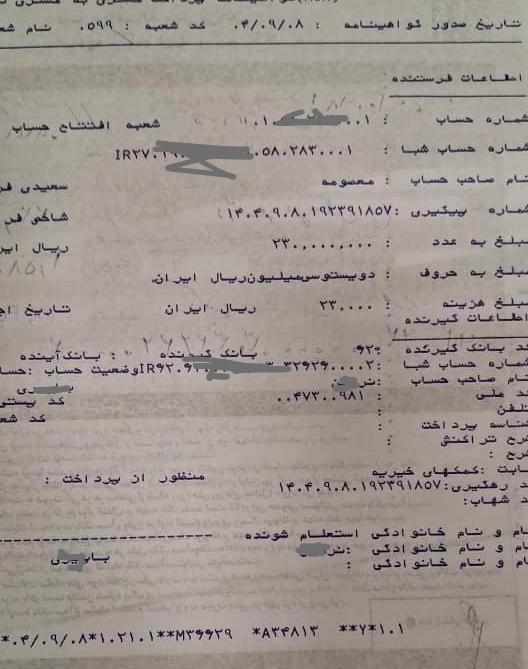 ۲۳ میلیون برای نرگس قصه ما واریز شد و ۳ میلیون هم برای مورد دیگه ای بنام فاطمه، که نیاز به کمک فوری داشت.