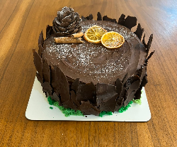 بنابراین همون دکور رو اجرا کردم . برای پای درخت خزه خوراکی درست کردم و برای روش هم با کیک شکلاتی و کورن فلکس های شکلاتی ، یه میوه کاج خوشگل درست کردم . چندتا حلقه پرتقال خشک و چوب دارچین کیک رو مردونه تر کرد.