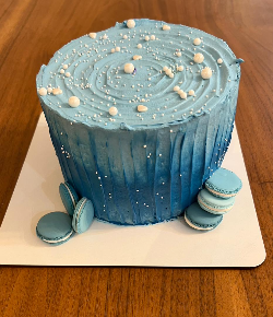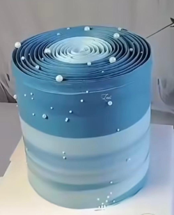 کیکی که برای درست کردنش خیلی ذوق داشتم، سه تا صفحه گرد بود که دوتاش بصورت نامتقارن و سومی بصورت عمودی روی دو تای پایینی قرار میگرفت، با هارمونی رنگ آبی، از آبی درباری گرفته تا فیروزه ای و آسمانی .